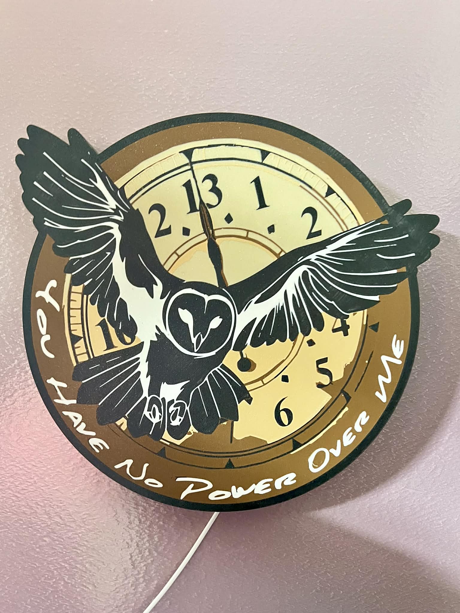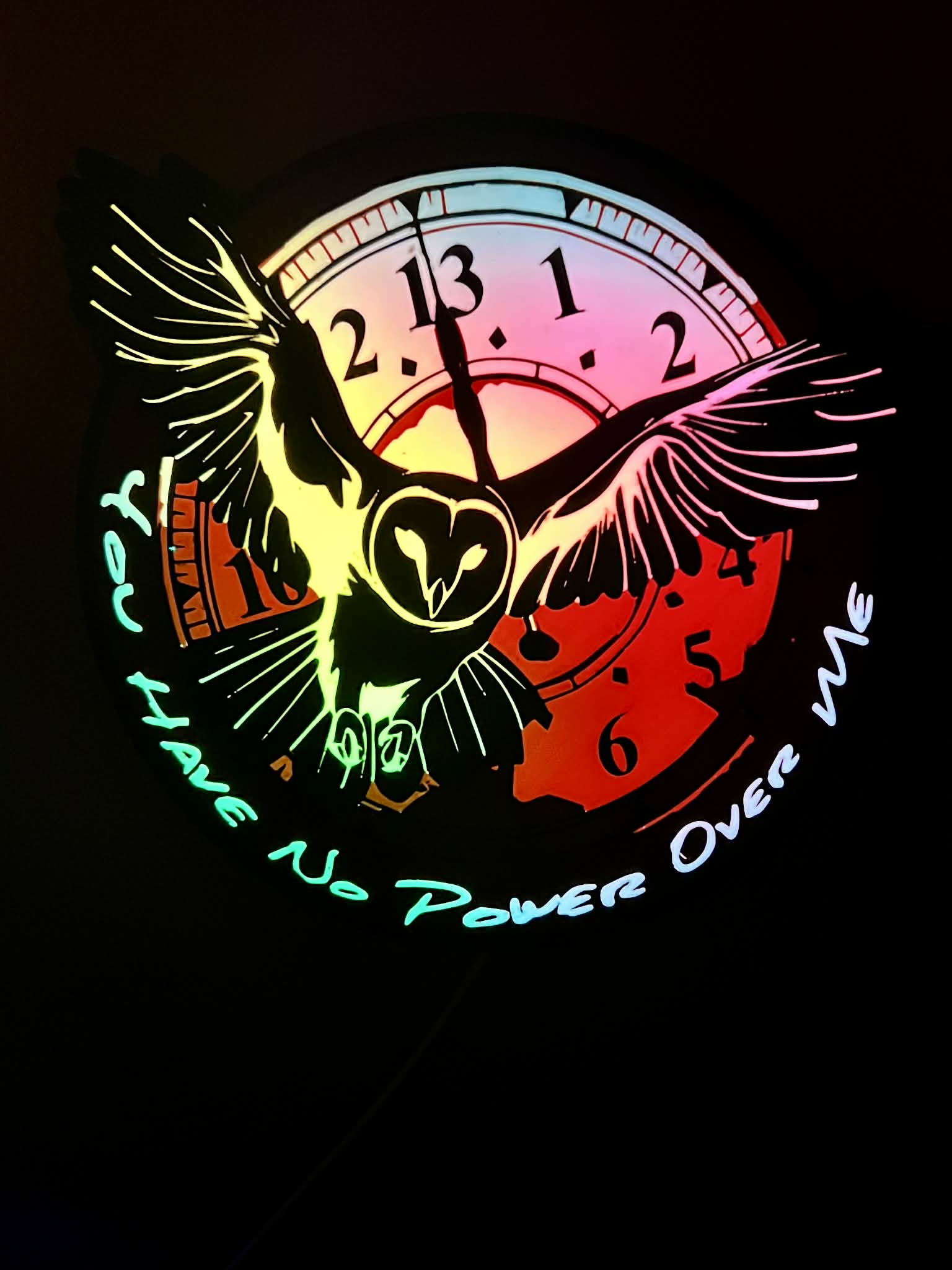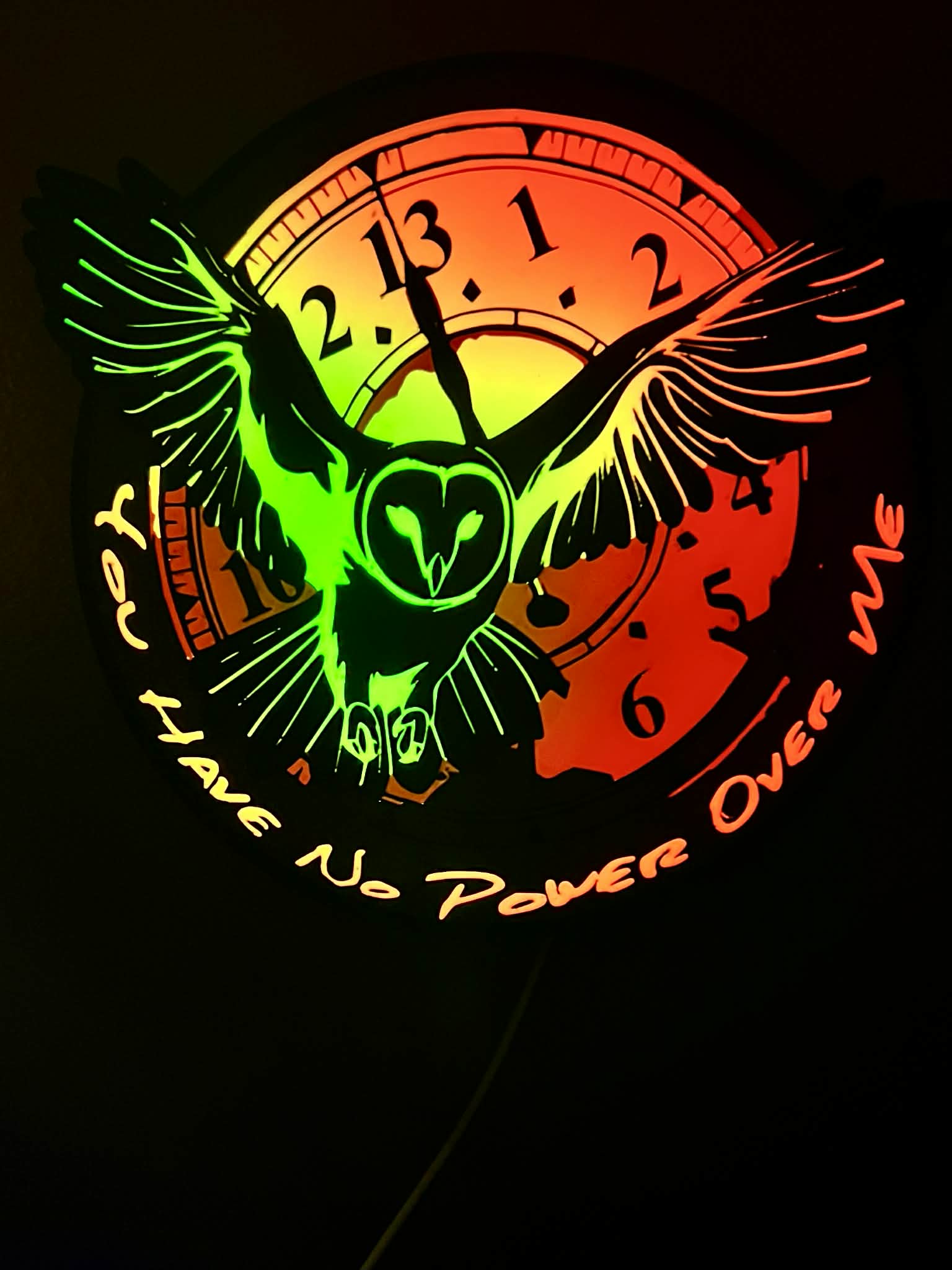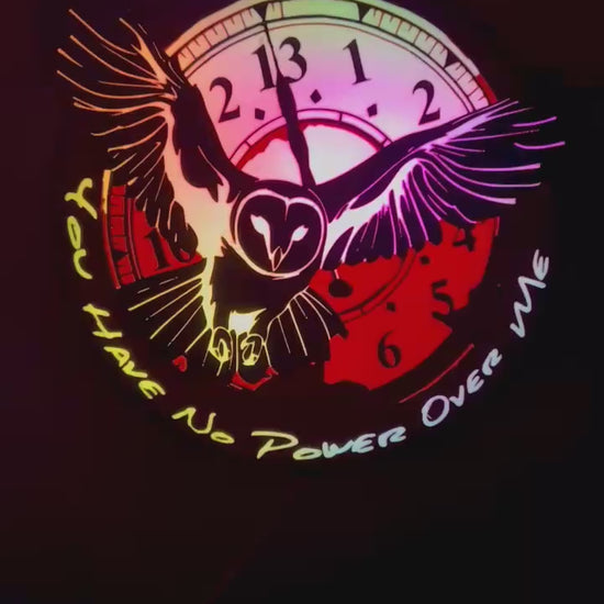 Labyrinth-Inspired RGB Owl Clock Display – “You Have No Power Over Me” – Lighted Wall Art