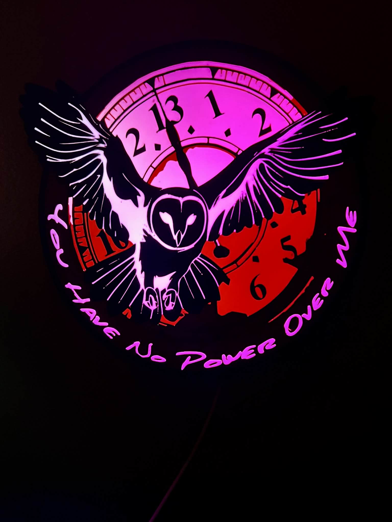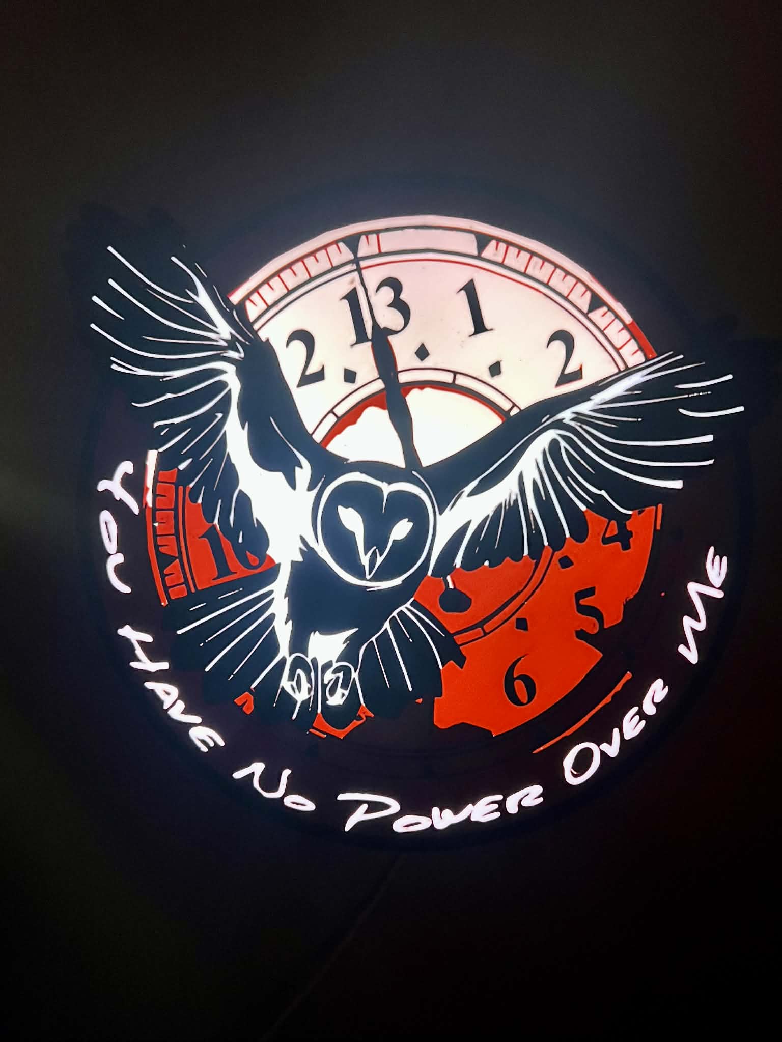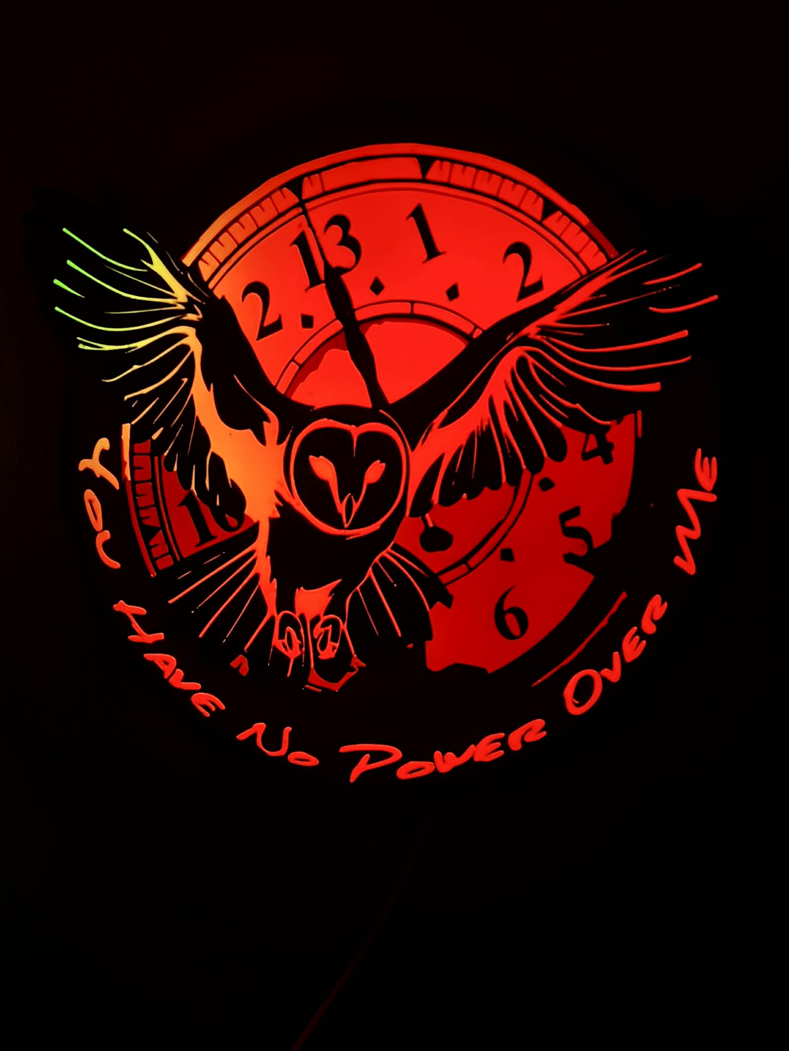 Labyrinth-Inspired RGB Owl Clock Display – “You Have No Power Over Me” – Lighted Wall Art